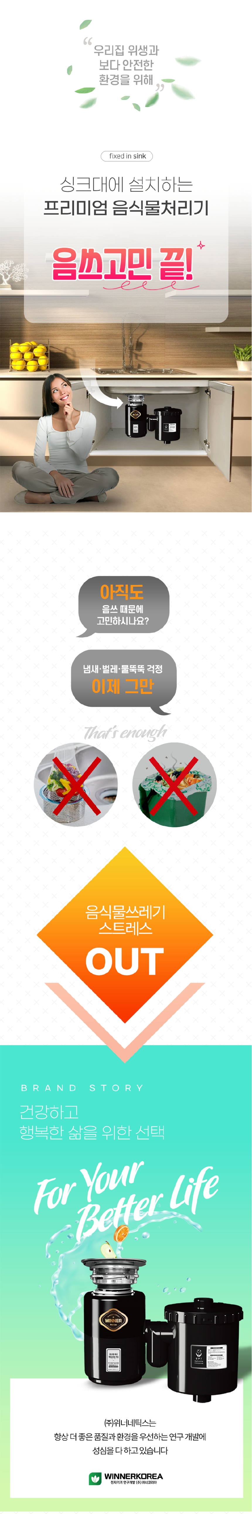 환경부 규정에 의거 제조 / 판매 / 사용 허가된 주방용 오물 분쇄기 입니다.