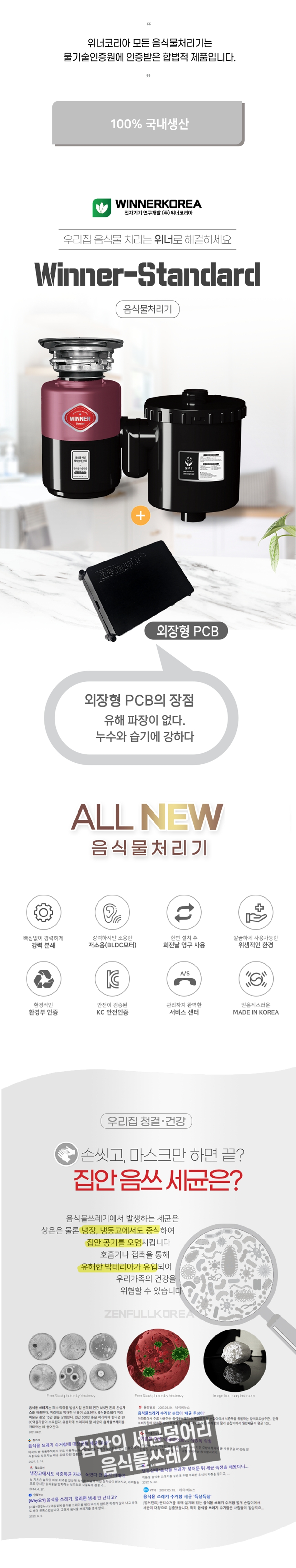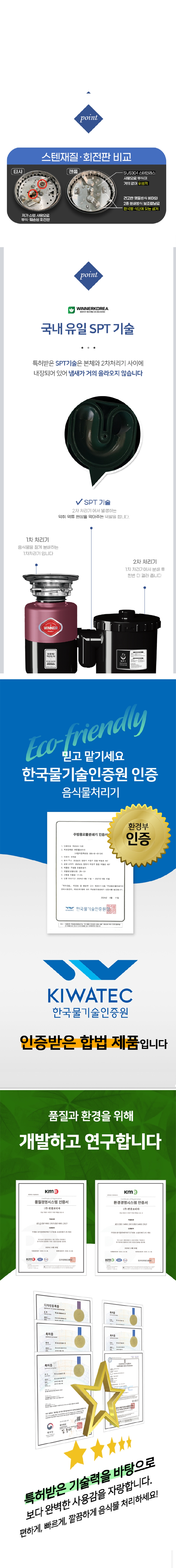 환경부 규정에 의거 제조 / 판매 / 사용 허가된 주방용 오물 분쇄기 입니다.