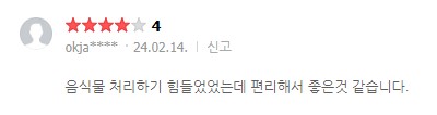 스마트스토어 C클래스 리뷰 페이지 정보 조회1,459회 댓글0건 관련링크 이전글 다음글 목록 본문 상품명: 젠풀 음식물처리기 C-CLASS 가정용 싱크대 음식물분쇄기 음식물 처리하기 힘들었었는데 편리해서 좋은것 같습니다. 댓글목록 등록된 댓글이 없습니다. 이전글 다음글 목록