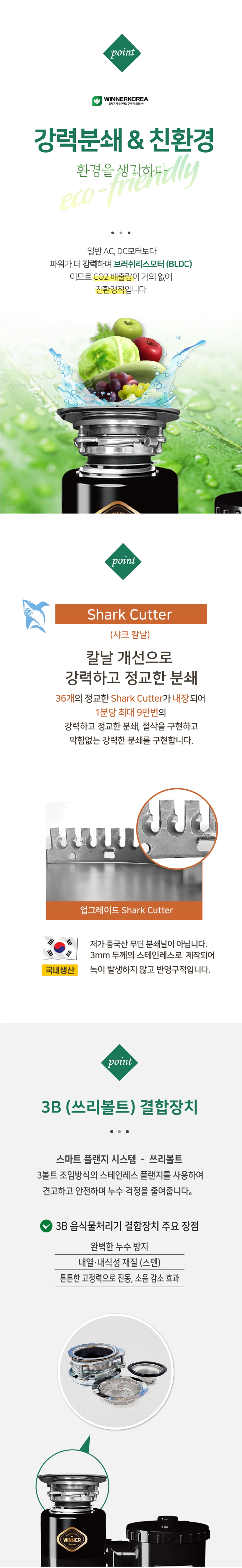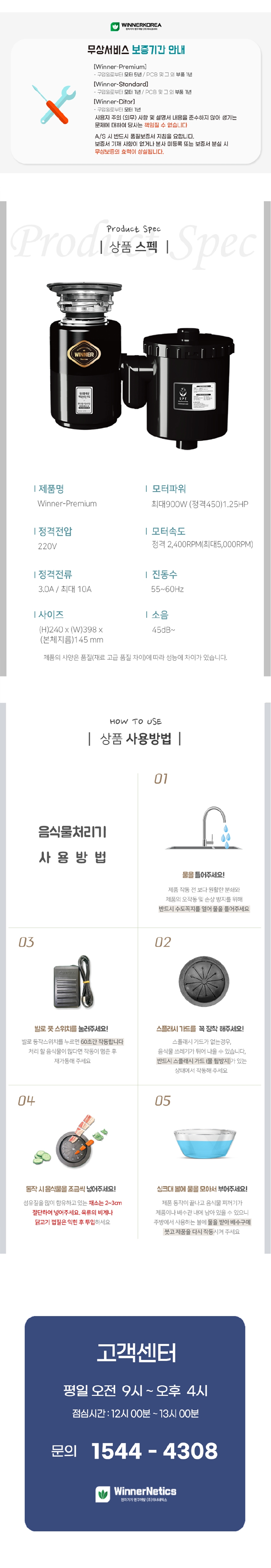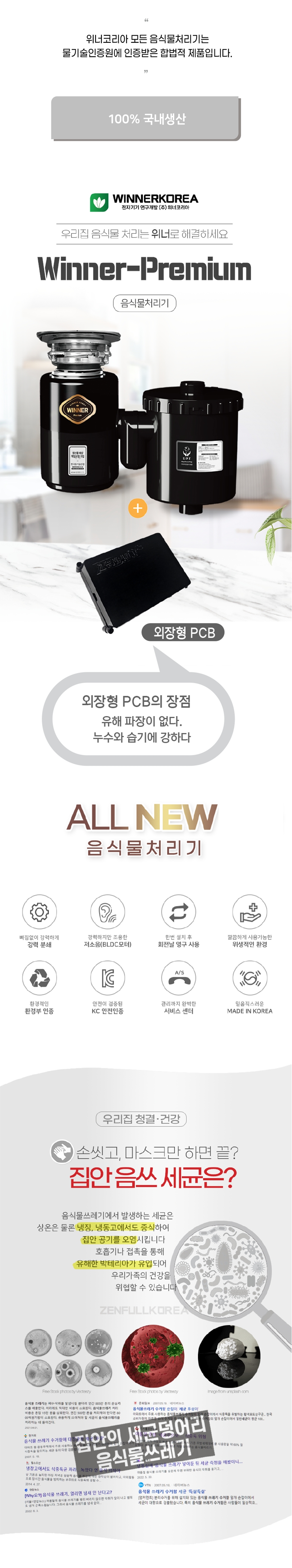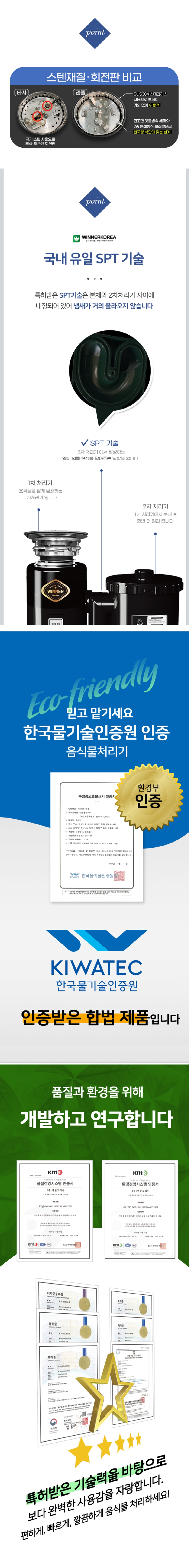 환경부 규정에 의거 제조 / 판매 / 사용 허가된 주방용 오물 분쇄기 입니다.