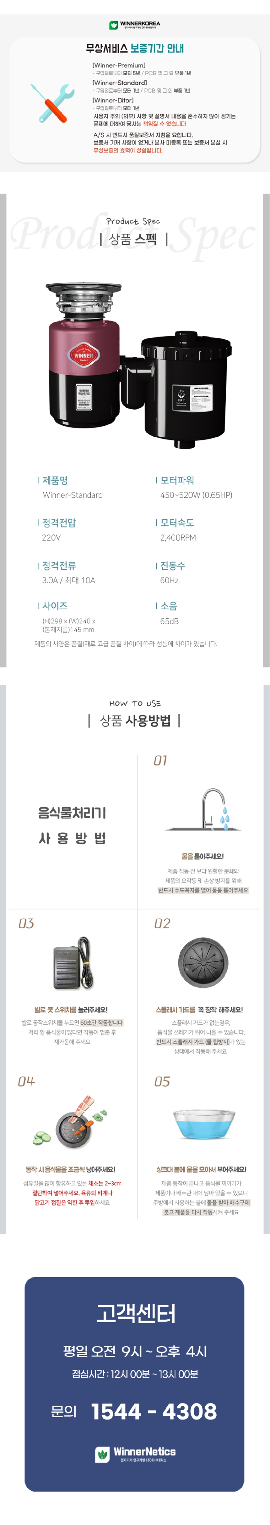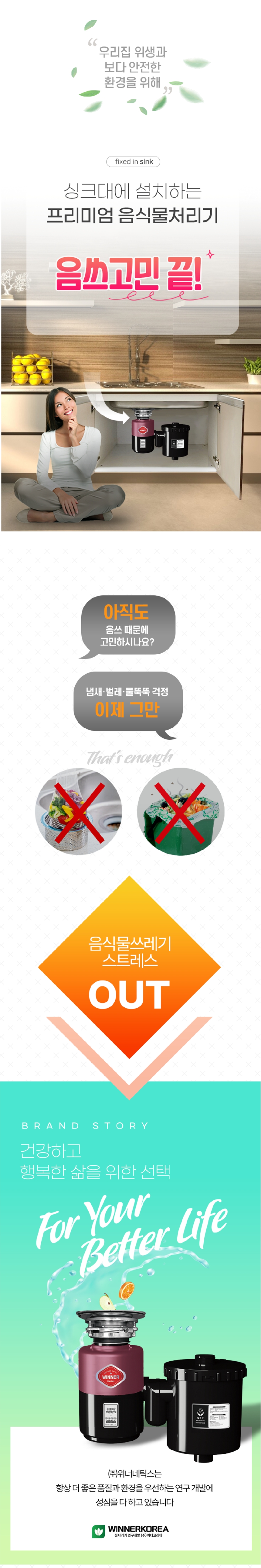 환경부 규정에 의거 제조 / 판매 / 사용 허가된 주방용 오물 분쇄기 입니다.